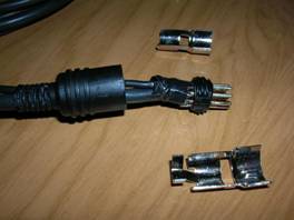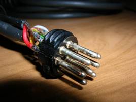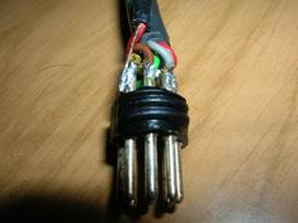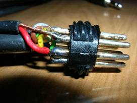 En este pin ya tenemos conectado un cable, con lo que yo he resuelto soldar la masa (cable sin protección de plástico) por fuera. Soldarlos juntos dentro del pin hubiera supuesto un lío.